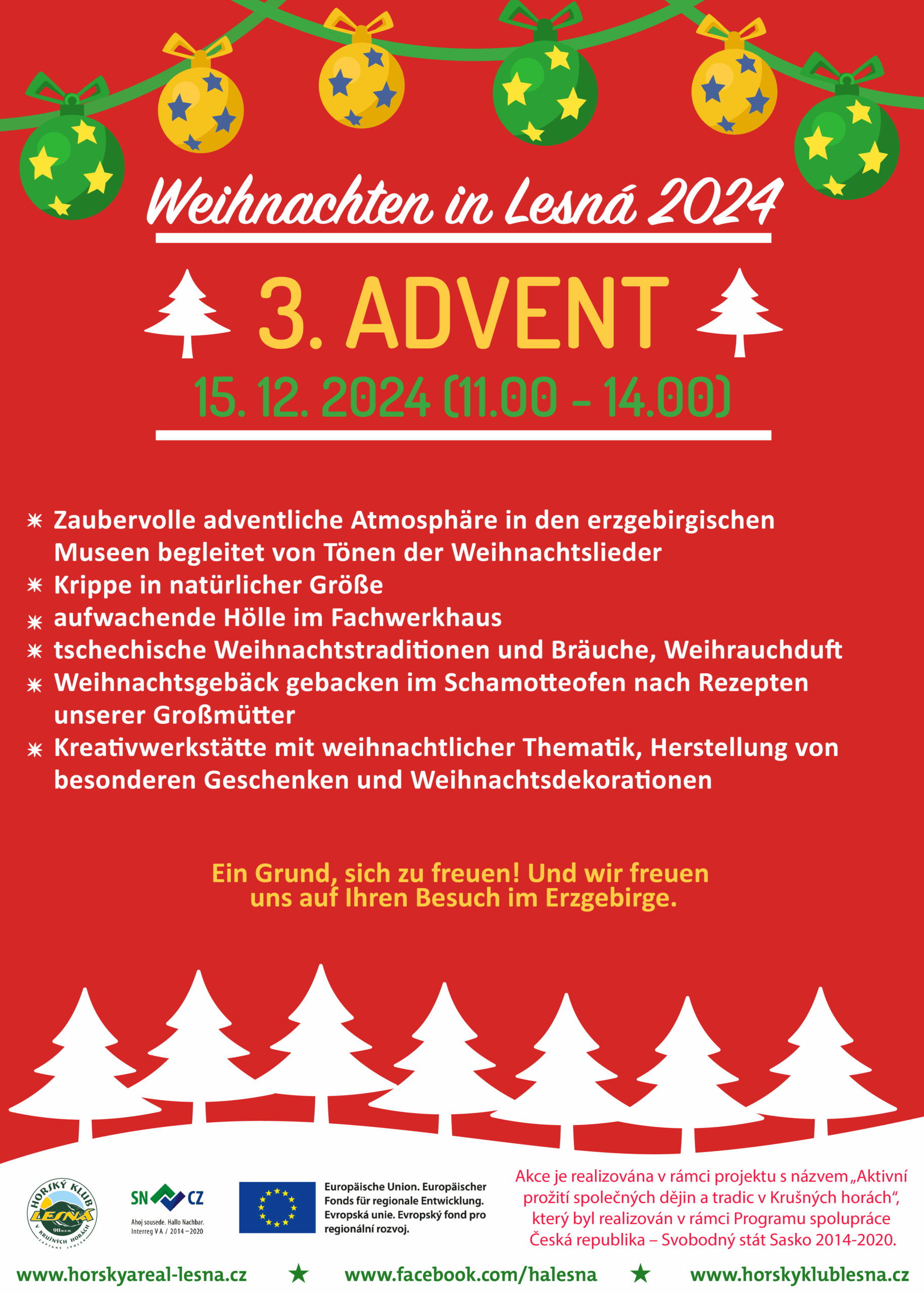 Těšíme se na Vás na předposlední letošní, v pořadí již 3. adventní neděli u nás v Lesné.